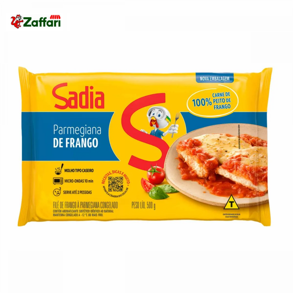 Filé de Frango à Parmegiana Congelado, da marca Sadia, vem em embalagem com 500 gramas. Com textura macia, seu sabor é marcante e característico do prato. Livre de conservantes, o frango conta com cobertura de molho de tomate e queijo, ingredientes tradicionais da receita. O preparo do alimento pode ser feito no micro-ondas, forno ou air fryer, seguindo as instruções da embalagem. Sua porção de 275 gramas possui valor energético de 321 kcal, 18 gramas de carboidratos, 26 gramas de proteínas, 16 gramas de gorduras totais, 3,1 gramas de fibra alimentar e 880 miligramas de sódio.